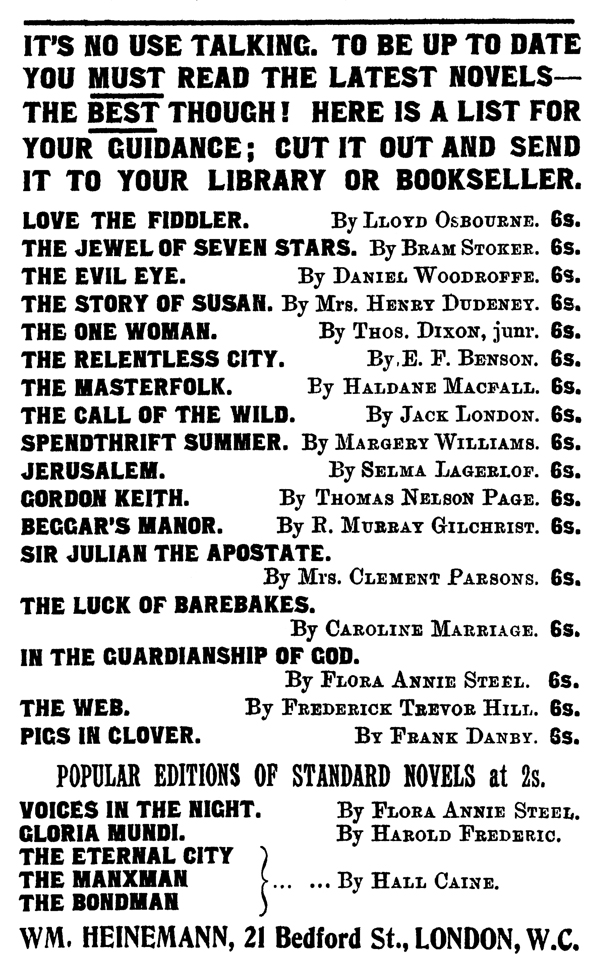 M. A. P. (Mainly About People), London, January 30, 1904 References [1] Dalby, Richard and William Hughes. Bram Stoker: A bibliography, Essex: Desert Island Books, 2004, p63. |