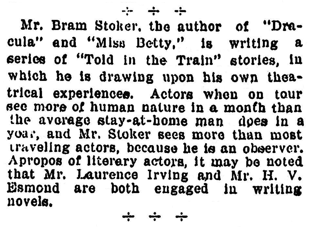 Stoker spend over ten years working on this collections of short stories. According to the following item from the the Cleveland Plain Dealer Stoker began working on Snowbound long before it was published in 1908.